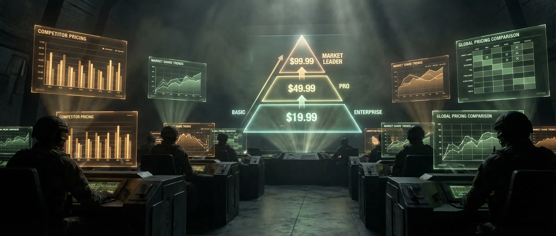 Every competitor's pricing has a weakness. This section maps the entire competitive pricing landscape, recommends optimal tier structure, and provides ready-to-deploy pricing attack strategies to undercut and outmaneuver every player in the market.